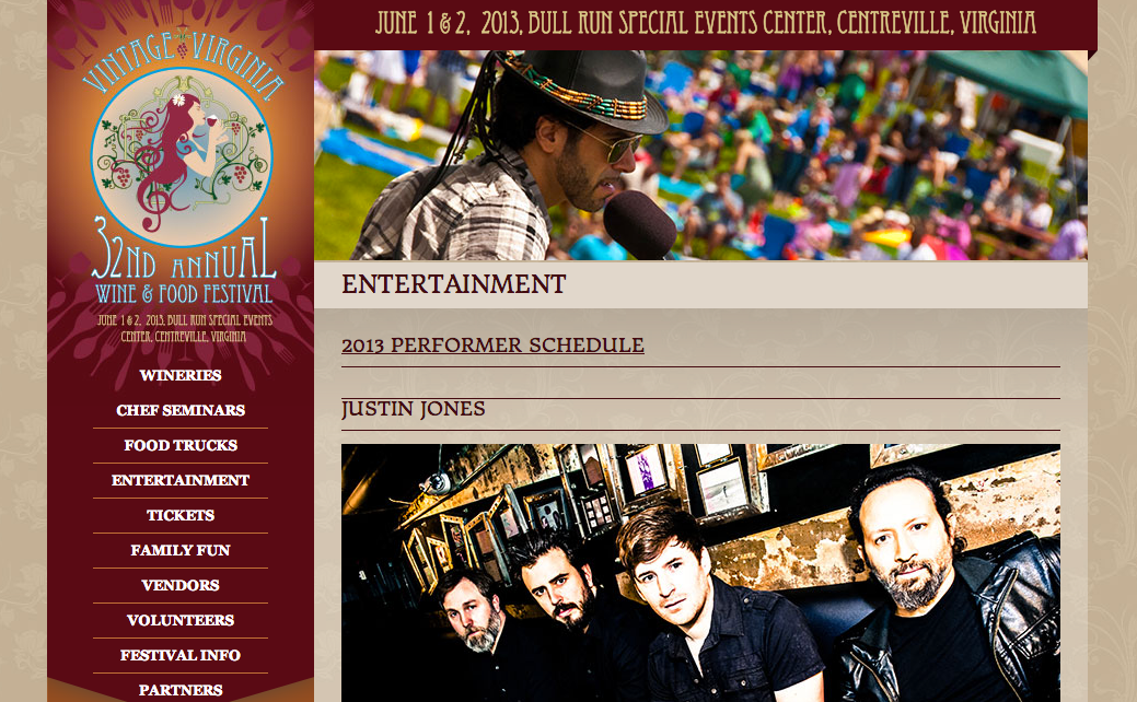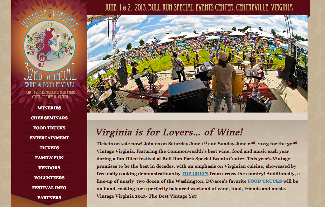 Web design and development for Vintage Virginia 2013.