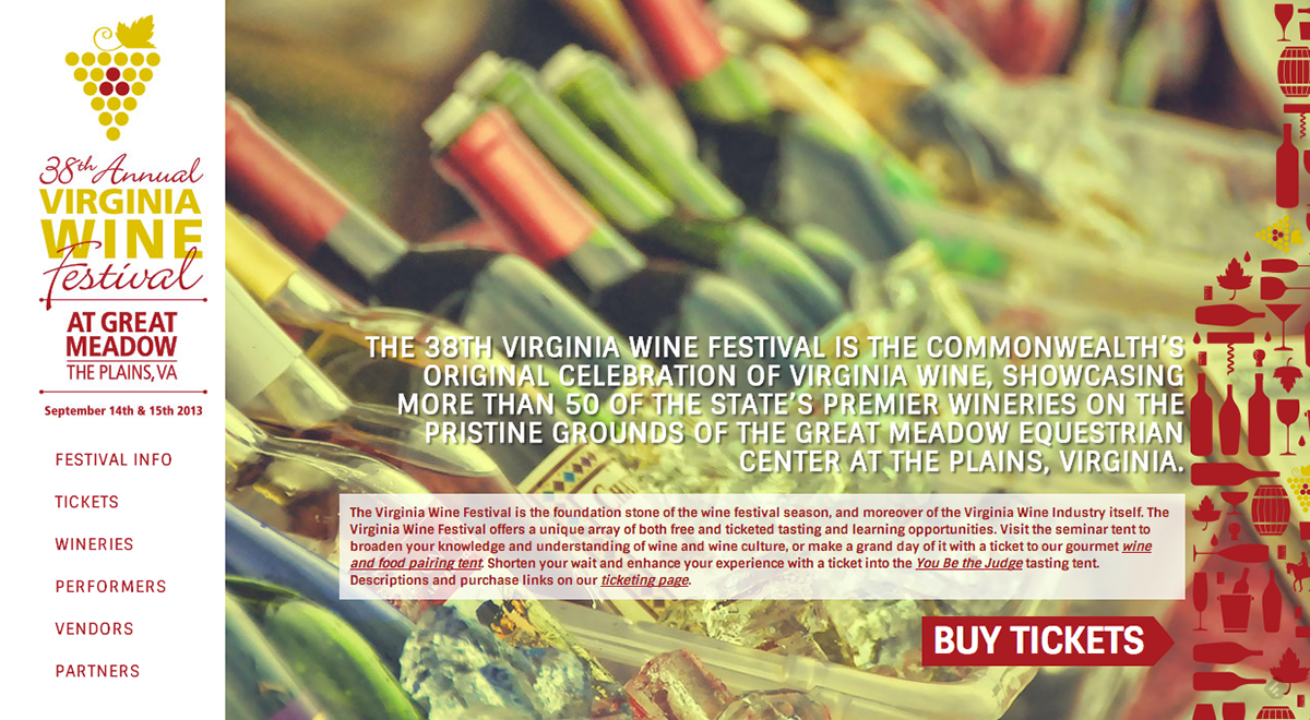 Web design and development for the Virginia WIne Festival 2013.